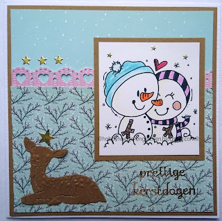 Daarna uitgesneden met een mal van Marianne Design. Het papier is een blokje, wat ik begin december gekocht heb. Verder heb ik de kaart afgewerkt met kraftpapier en als laatste heb ik steentjes gebruikt.